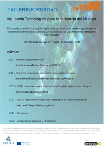 El próximo día 18 de junio, CETEM organizará un taller informativo con el objetivo de proporcionar a las empresas del sector conocimientos prácticos los beneficios de llevar a cabo procesos sistematizados de vigilancia tecnológica, así como herramientas que lo faciliten puestas al servicio de las empresas. Con este taller las empresas verán fortalecida su capacidad para anticiparse a las últimas tendencias tecnológicas y mantenerse competitivas en un entorno en constante evolución.