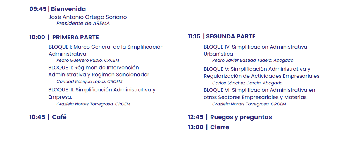 La Simplificación Administrativa es un paso esencial para mejorar la competitividad y la agilidad de las empresas. Esta jornada ofrece la oportunidad de profundizar en la comprensión del nuevo Decreto de Simplificación Administrativa, resolver dudas directamente con expertos y conocer cómo influirá en la gestión empresarial y administrativa.