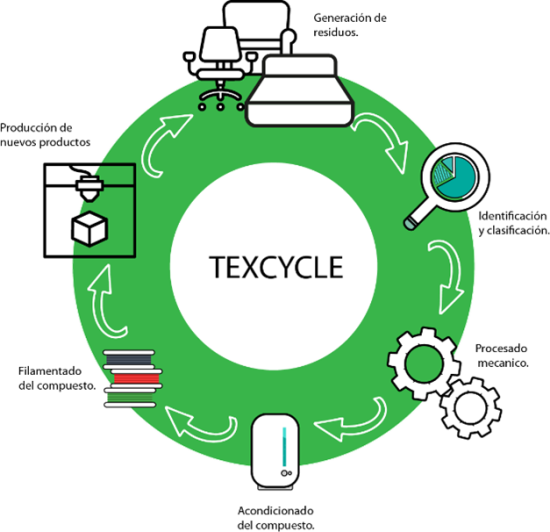 Aportar una solución sostenible a la abundante generación de residuos textiles generados durante los procesos de fabricación de mobiliario, especialmente en las operaciones de corte y tapizado mediante tecnologías de fabricación aditiva basadas la técnica de modelado por deposición fundida.